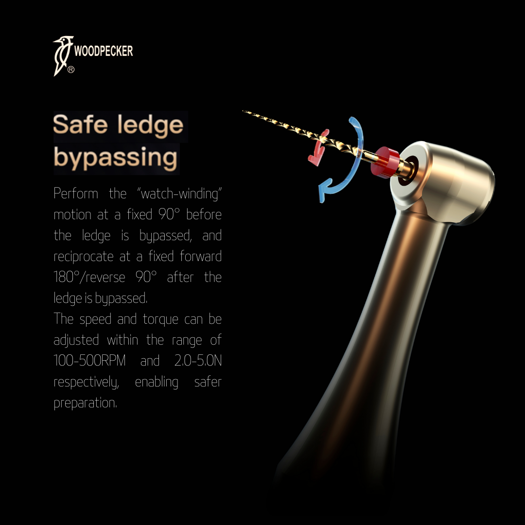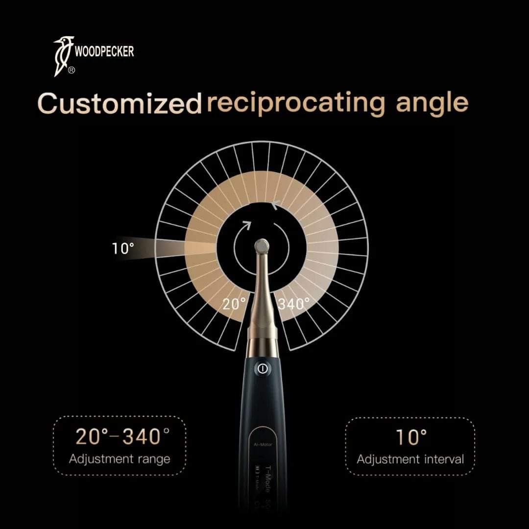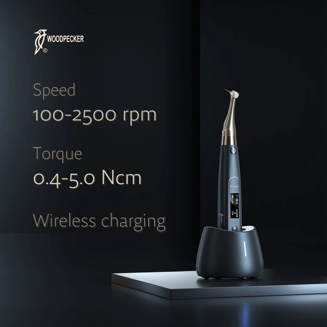 The Woodpecker Ai-Motor Endomotor with Apex Locator is an advanced, cordless endodontic device designed for efficient and safe root canal treatments. Featuring a powerful, brushless motor with low noise and long service life, it offers both root canal preparation and real-time canal length measurement. The integrated apex locator enables precise file positioning, automatically stopping or reversing when the file reaches the apical stop to prevent perforation. Its 360° rotatable contra- angle, wireless charging, and customizable settings enhance usability. Real-time feedback and dynamic torque control reduce file separation risk, making endodontic procedures more accurate, comfortable, and reliable for both dentists and patients
