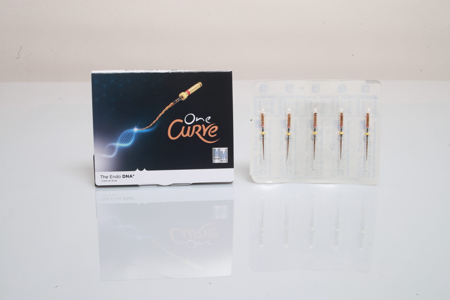 The controlled memory allows to pre-bend your file for improved canal entrance access or removal of a constraint. One Curve is 2.4 x more resistant to fracture compared to a conventional Ni-Ti instrument. Your endodontic treatments are safer and the risk of separation of the file is highly reduced. The triple helix cross-section on the first 4 millimeters at the tip increases the centering ability of the file in the root canal. The S shaped section in the medium and coronal parts increases debris removal. One Curve Mini has a Variable Pitch and is used in Continuos rotation motion.