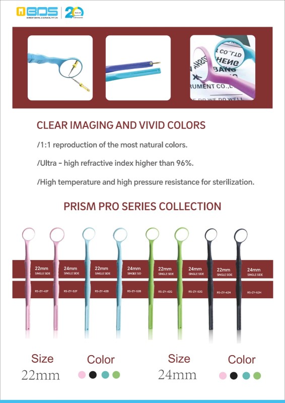 Designed for durability, the lens is flush with the mirror frame, preventing corrosion build-up and ensuring long-term reliability. Its ergonomic and lightweight construction enhances comfort for dental professionals, making procedures more efficient. Ideal for diagnostics and restorative treatments, Royva Prism Pro Mouth Mirrors set a new standard in dental visualization.